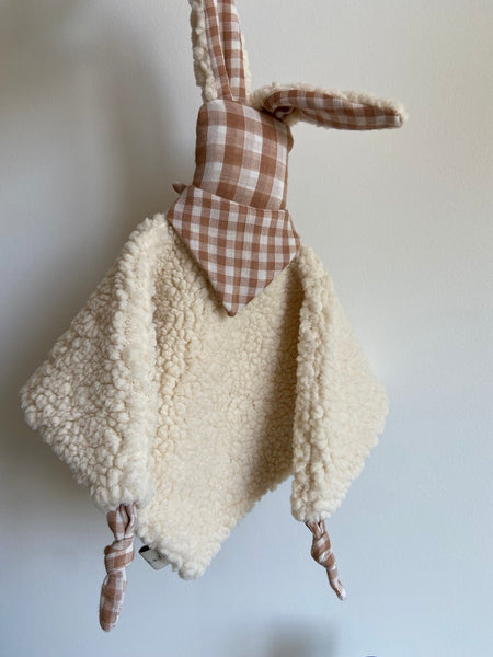 Minus Lapin, le doudou matchy-matchy de vos minus avec son bandana vichy et sa moumoute. Tout doux, il sera le compagnon idéal pour toutes les aventures et les câlins!